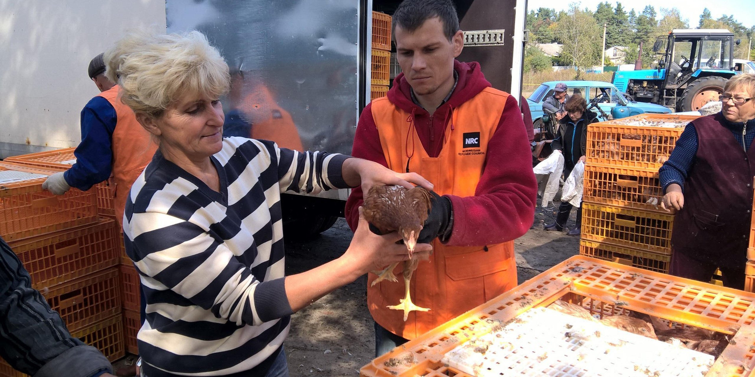 Vi jobber for at sivile skal ha et skikkelig tak over hodet, ved å reparere og bygge holdbare hus som tåler vinterkulden. Vi beskytter sivile på flukt fra vold ved å gi informasjon og rettshjelp. I lokalsamfunn langs frontlinjen sørger vi for rent vann og hygieneartikler. Vi har også flere tiltak for å sikre menneskene der trygg mat, og at de i størst mulig grad skal være selvforsynte og selv kunne sørge for sitt eget livsopphold.