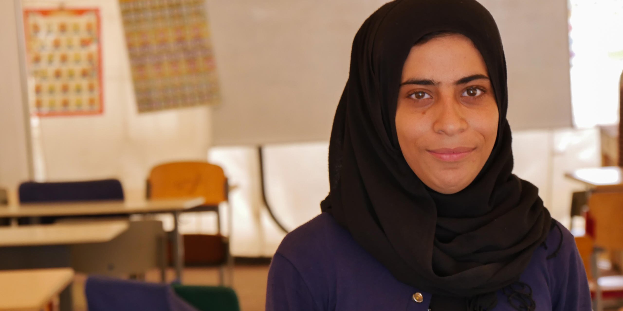 I Mosul gikk jeg på ungdomsskolen, men på grunn av krigen mistet jeg tre års skolegang. At jeg får muligheten til å ta igjen undervisningen jeg har mistet her, er jeg veldig glad for. Jeg elsker skolen! Favorittfaget er selvfølgelig matematikk – og jeg er faktisk ganske god i det.