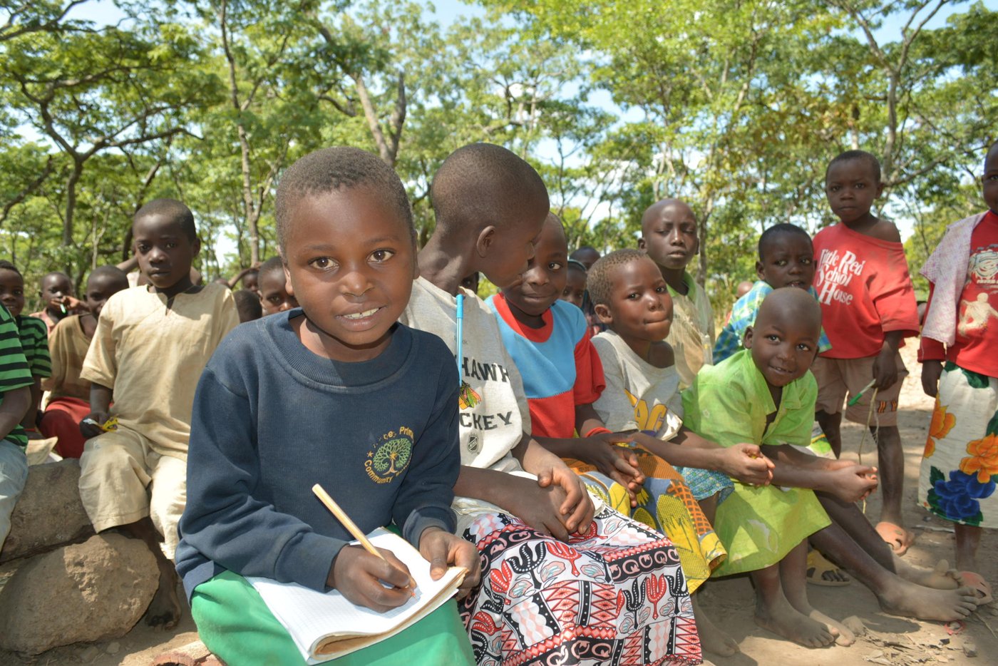 De som har haft tur och fått en plats i skolan sitter tätt ihop. Det är inte ovanligt med uppåt 100 elever i en klass och många barn undervisas av frivilliga lärare under skuggande träd.
