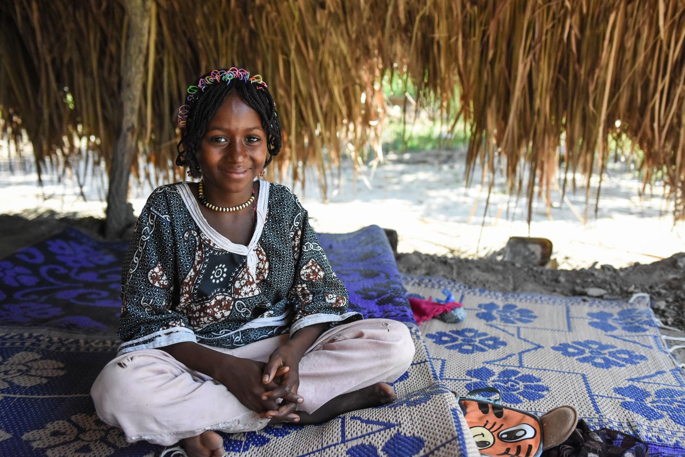 Hennes nya hem har ett tak av halm, men inga väggar.