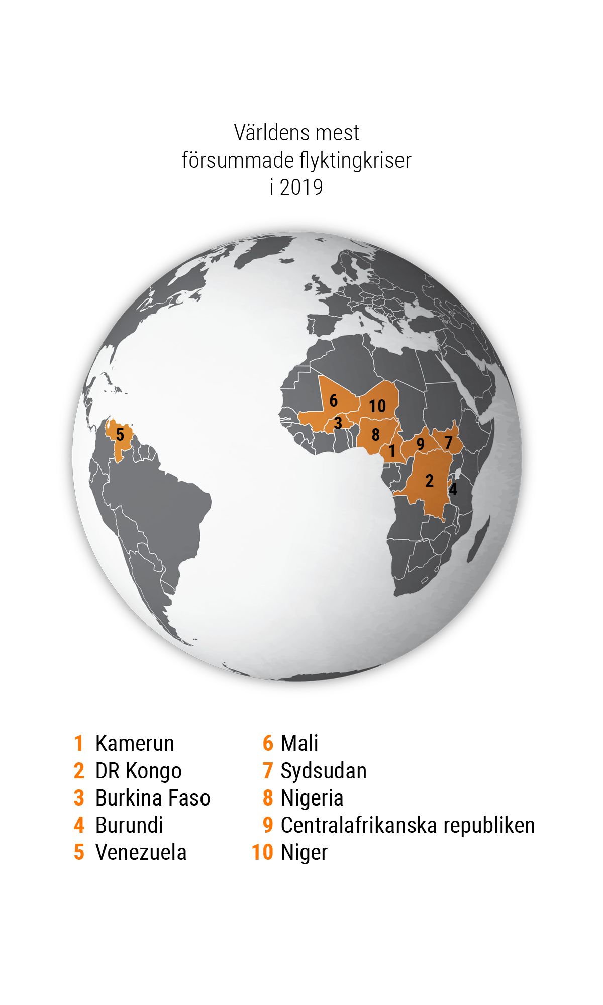 Varje år presenterar NRC Flyktinghjälpen en lista över de tio mest försummade flyktingkriserna i världen för att synliggöra dessa glömda nödsituationer.