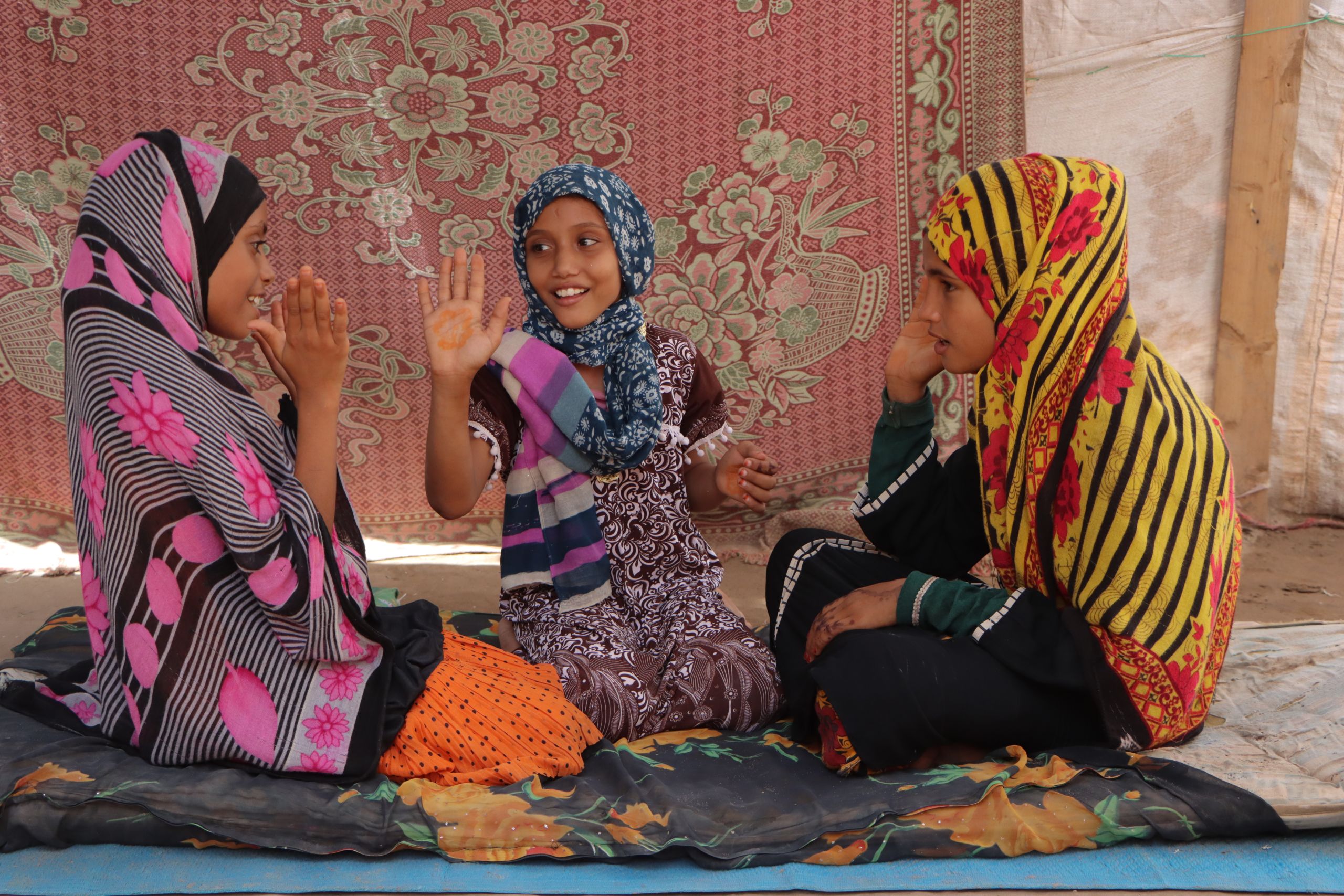När Yamama inte gör läxor eller hjälper till hemma är hon tillsammans med sina vänner Amira och Sabreen.