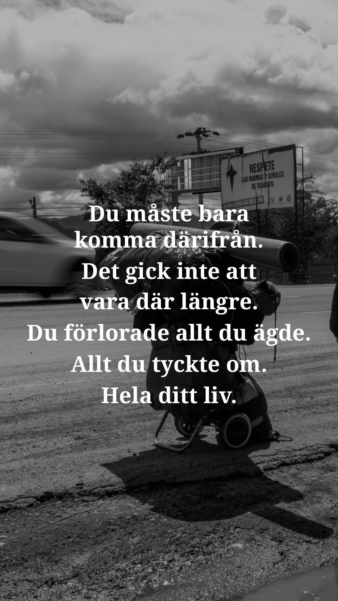 Du måste bara komma undan. Det gick inte att vara kvar. Du lämnade allt du ägde. Allt du älskade. Hela ditt liv.