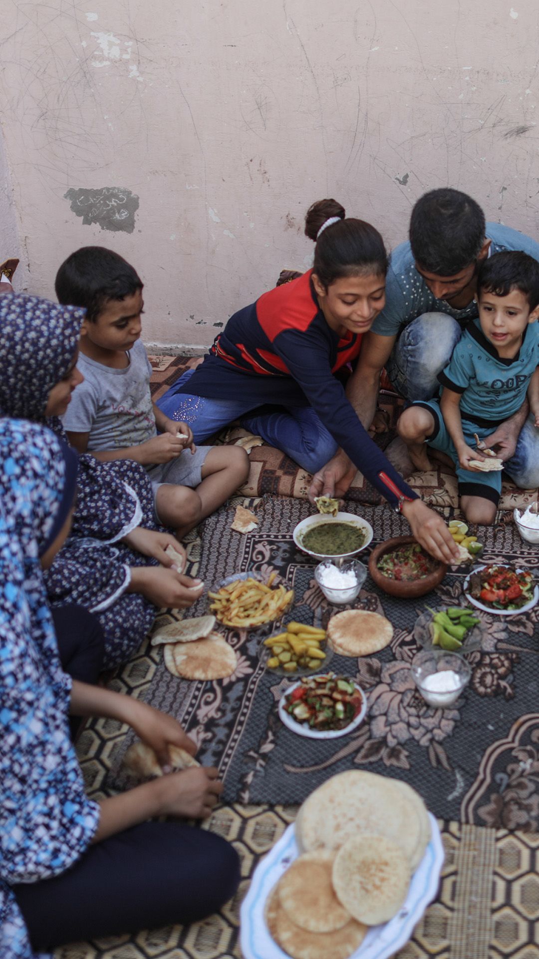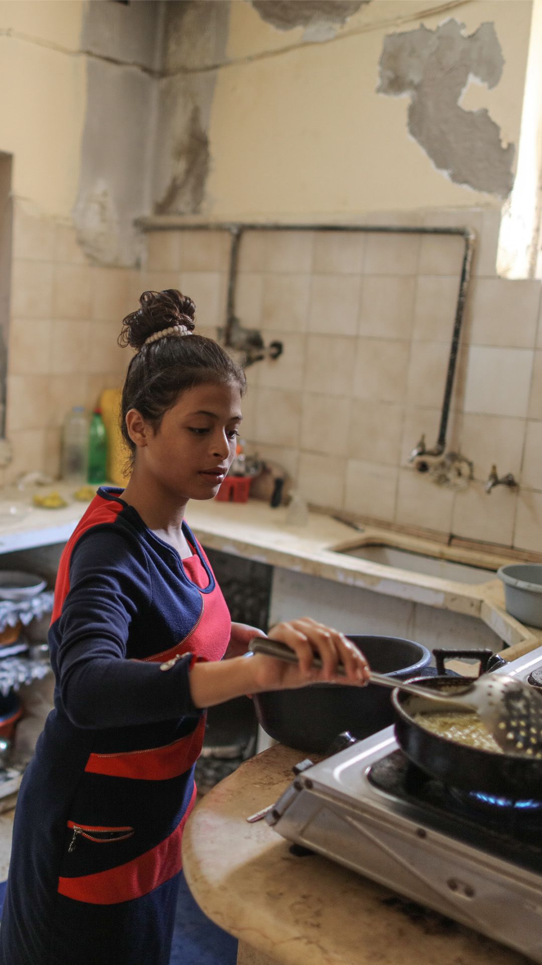 Omaia bor i stadsdelen Al-Sha’af tillsammans med sin farfar, mamma och pappa, tre systrar och två småbröder. Hennes pappa jobbar som stenarbetare.