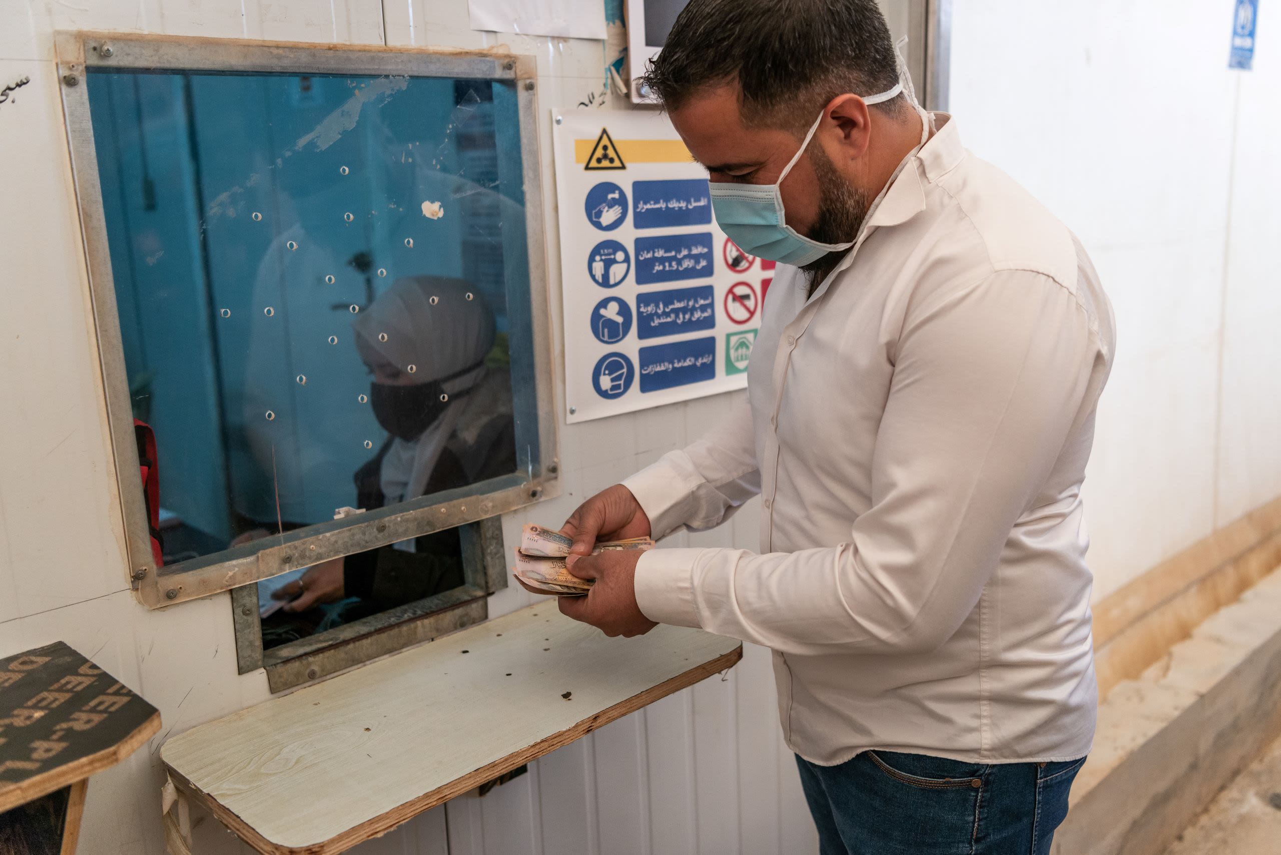 Flyktingarna här är beroende av hjälp från myndigheterna och humanitära biståndsorganisationer. Pengar delas ut i lägret så att människorna kan köpa det de behöver.